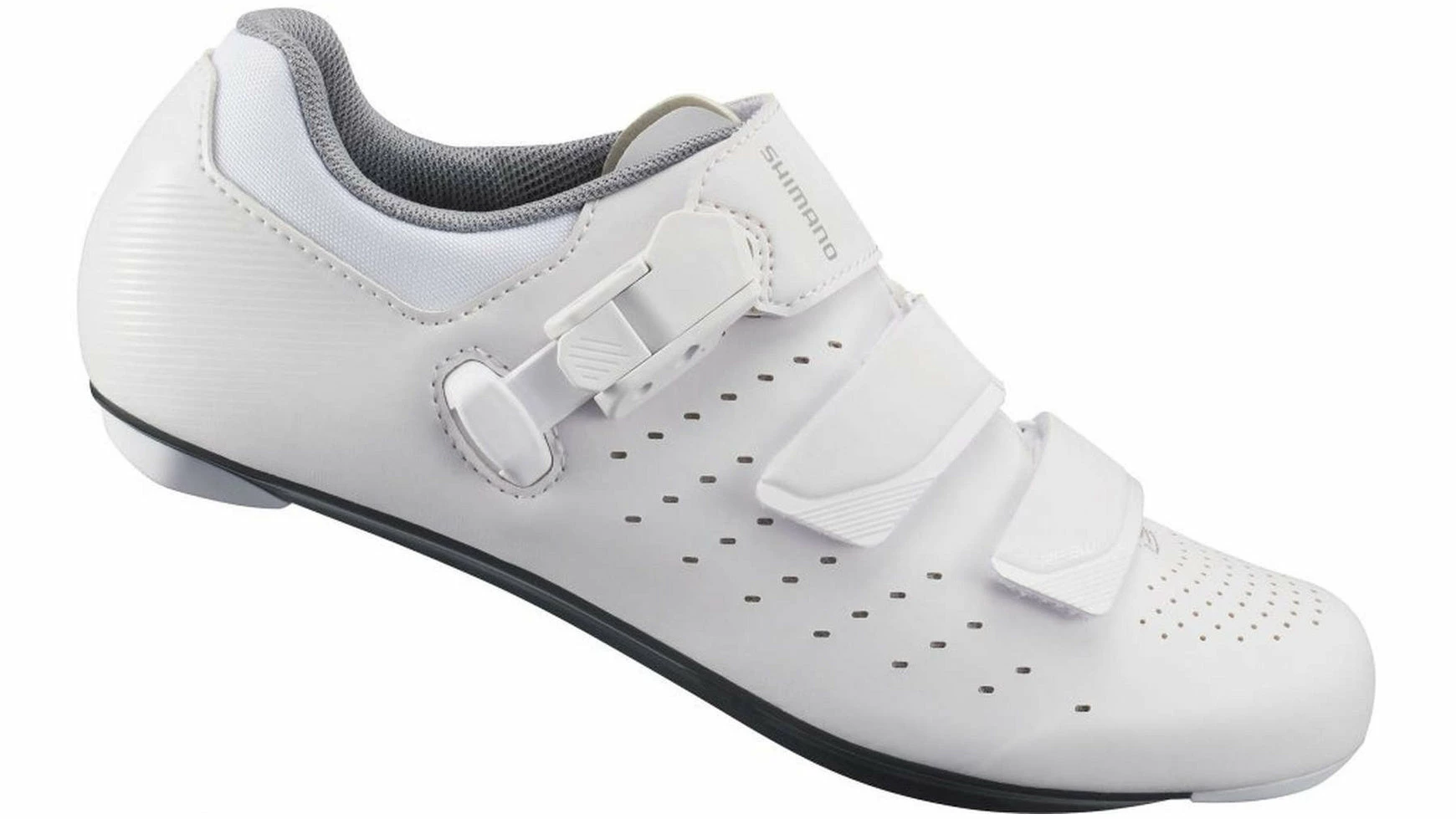 Diese leichten Damen Rennradschuhe von Shimano überzeugen mit einer optimalen Passform und guter Atmungsaktivität. Die SH-RP3 bieten dank ihrer glasfaserverstärkten Nylonsohle optimale Kraftübertragung, so dass jedes getretene Watt zuverlässig aufs Pedal geht. Ein flacher Ratschenverschluss sorgt zudem für festen Halt und ermöglicht eine millimetergenaue Anpassung an den Fuß. Einfach ein perfekter Treter für´s Kilometer sammeln auf asphaltierten Straßen.